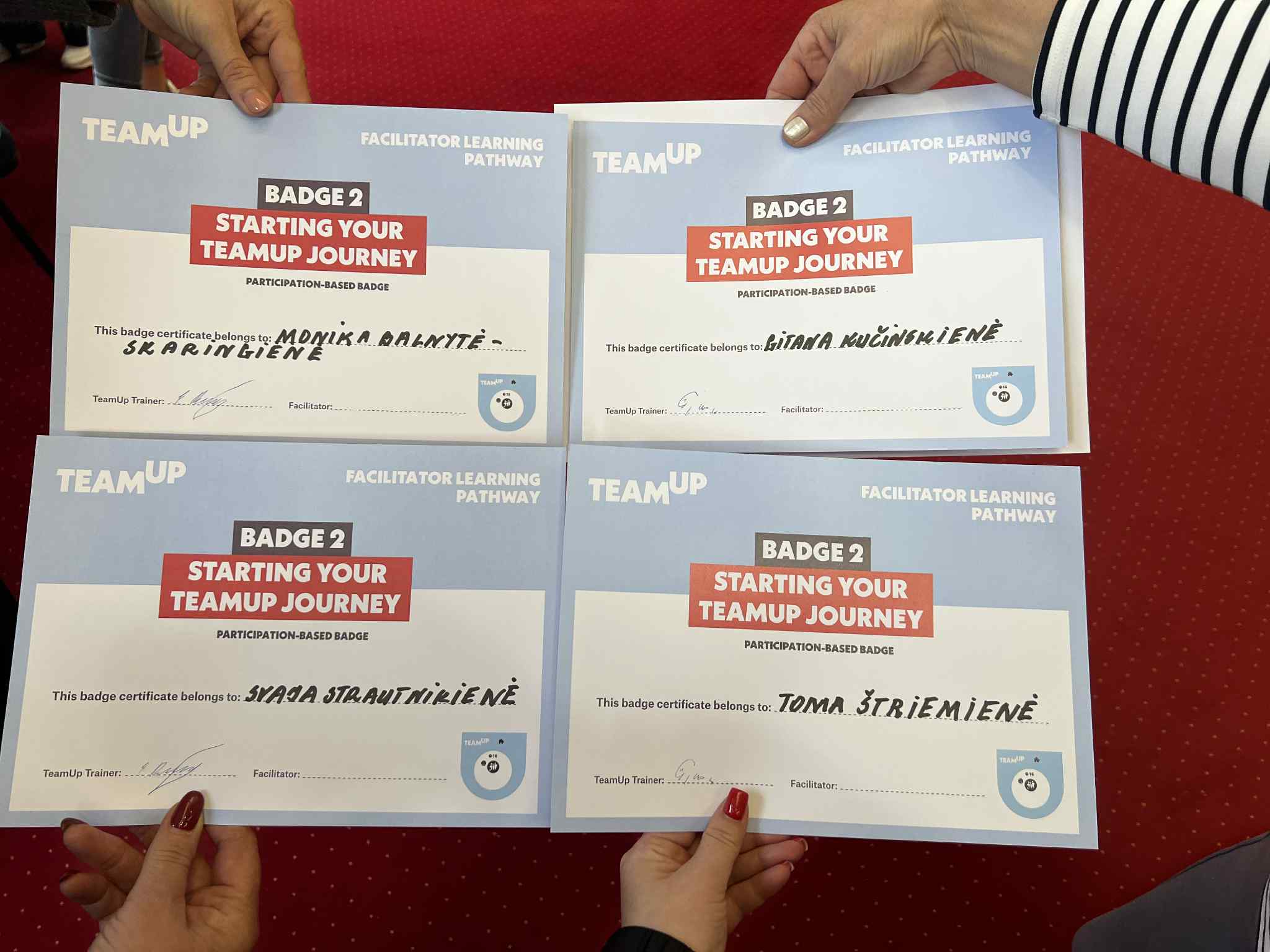 „Vaiko užuovėjos“ komanda toliau siekia tobulėti ir stiprinti vaikų emocinę gerovę! Mūsų darbuotojai – Monika Balnytė-Skarangienė, Toma Štremienė, Gitana Kučinskienė ir Svaja Strautnikienė – spalio 9-10 d. dalyvavo „Team Up“ mokymuose, kuriuos organizuoja „Gelbėkit vaikus“ (angl. Save the Children). Šių mokymų tikslas – suteikti specialistams naujų žinių ir praktinių įgūdžių, kaip per judėjimą, žaidimą ir bendravimą padėti vaikams geriau išreikšti emocijas, jaustis saugiai bei stiprinti pasitikėjimą savimi. Džiaugiamės galėdami būti dalimi šios iniciatyvos ir nekantraujame pritaikyti įgytas žinias savo kasdienėje veikloje, siekiant dar efektyviau padėti vaikams augti, mokytis ir jaustis išgirstiems ![]()