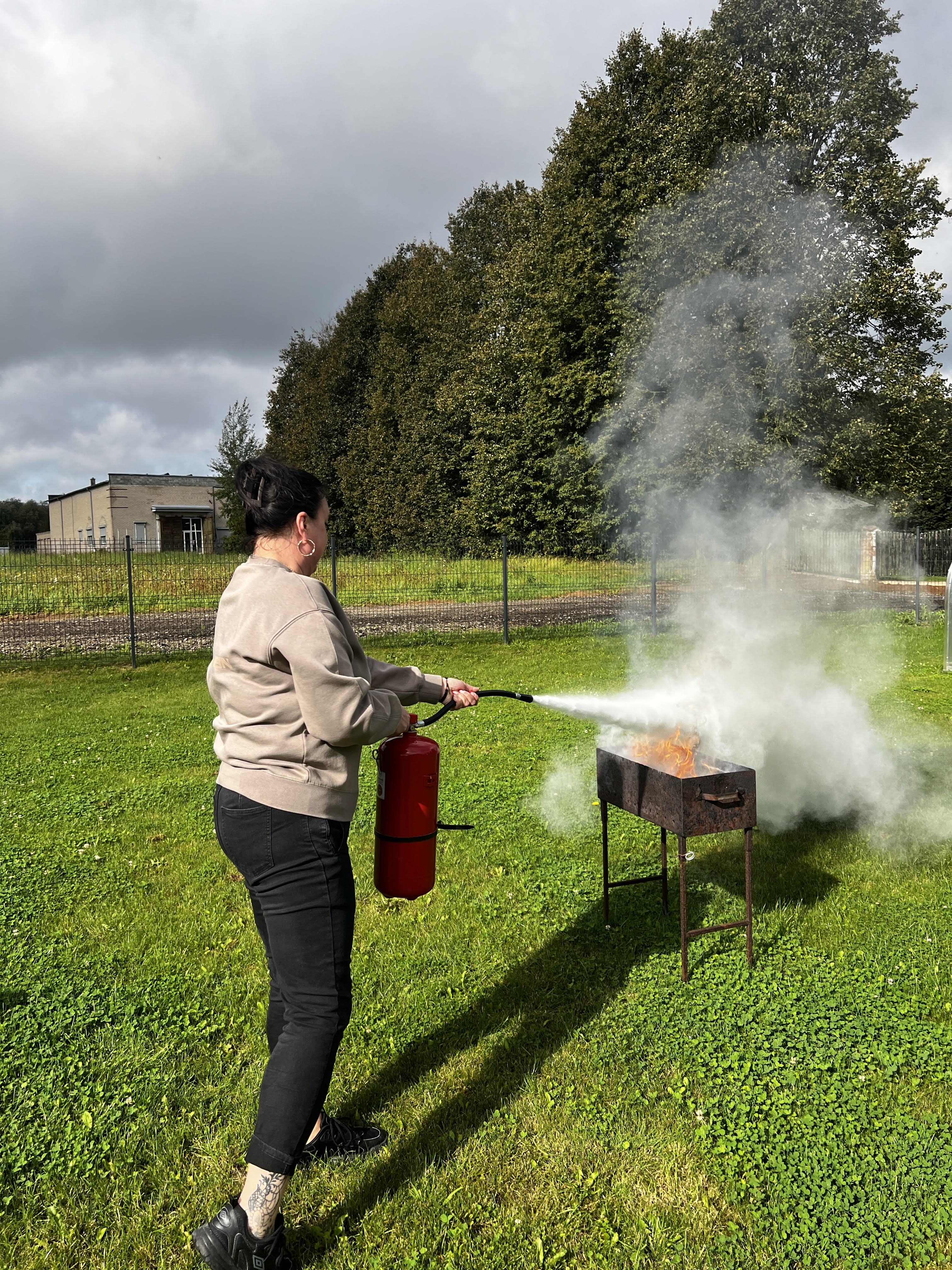 Šiandien viešosios įstaigos „Vaiko užuovėja“ darbuotojai dalyvavo priešgaisrinės saugos mokymuose, kurių metu buvo ne tik atnaujintos teorinės žinios, bet ir praktiškai išbandytas gesintuvų naudojimas.